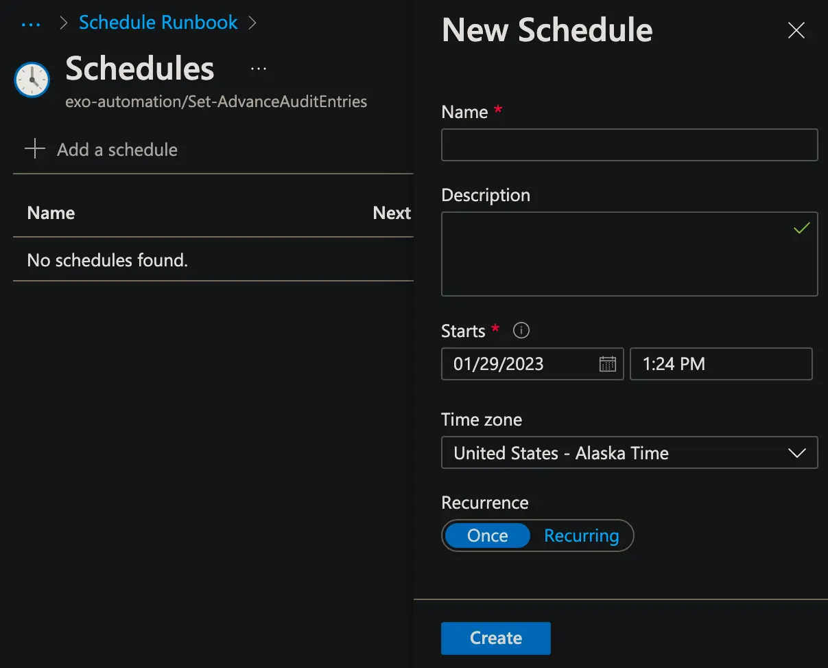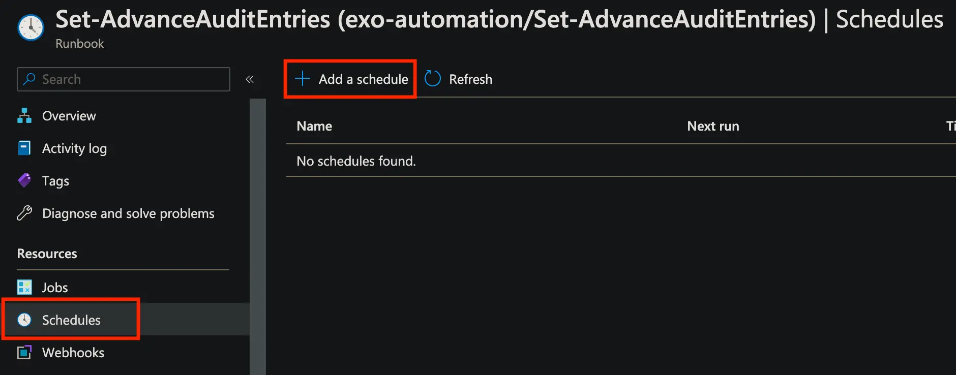 On the next screen, click Link a schedule to your runbook. If you don’t have schedules created that will work for this, click Add a schedule and create one!