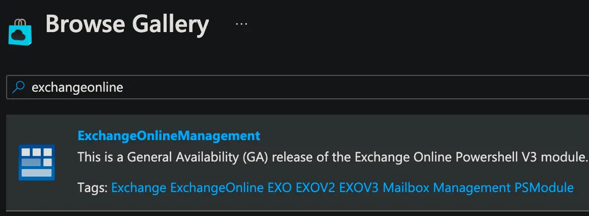 Search for ExchangeOnlineManagement, then select the ExchangeOnlineManagement modules. It will show a confirmation page with a list of cmdlets, and simply click Next to continue.