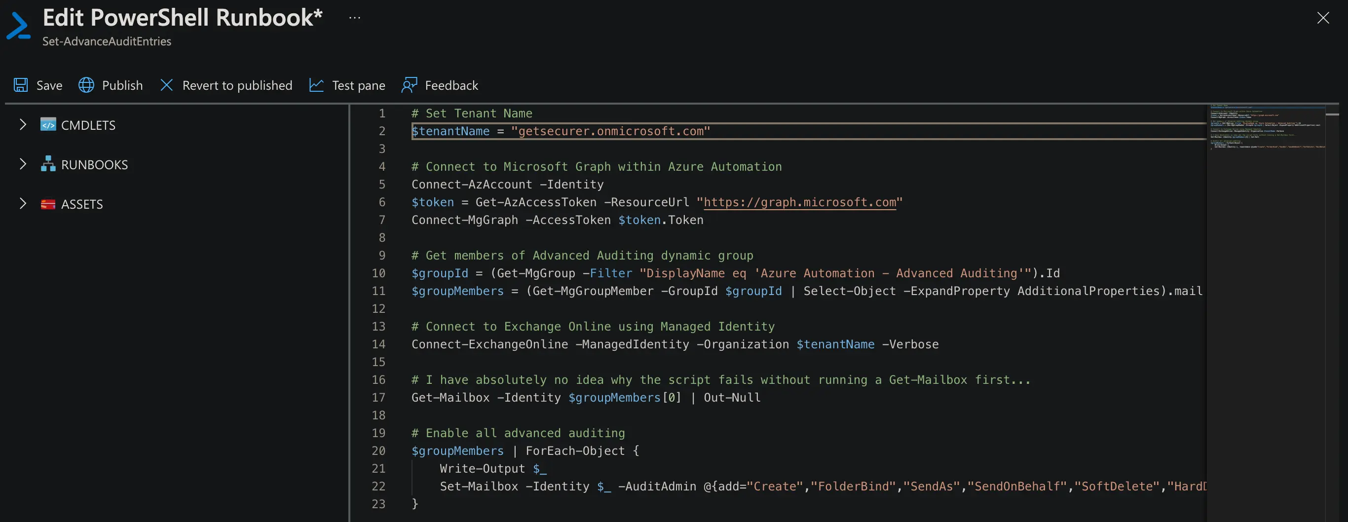 10$groupId = (Get-MgGroup -Filter "DisplayName eq 'Azure Automation - Advanced Auditing'").Id