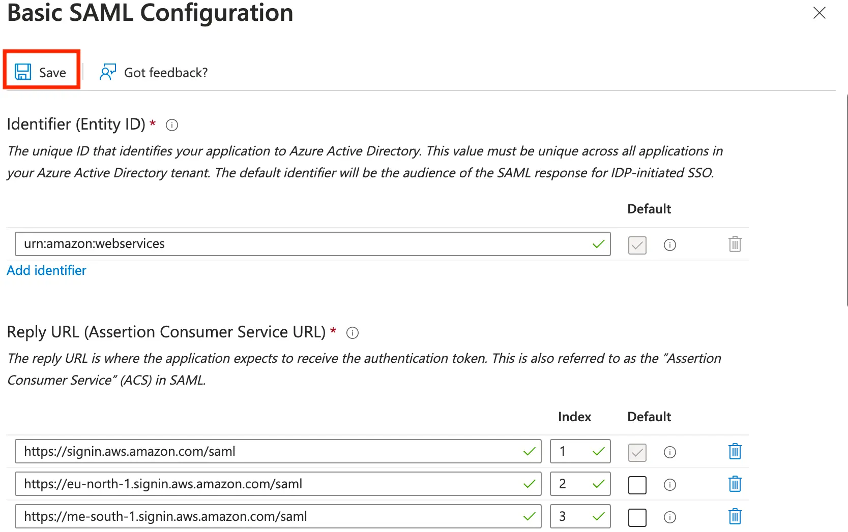 4Replacement: arn:aws:iam::<AWS Account ID>:saml-provider/aad,arn:aws:iam::<AWS Account ID>:role/{role}