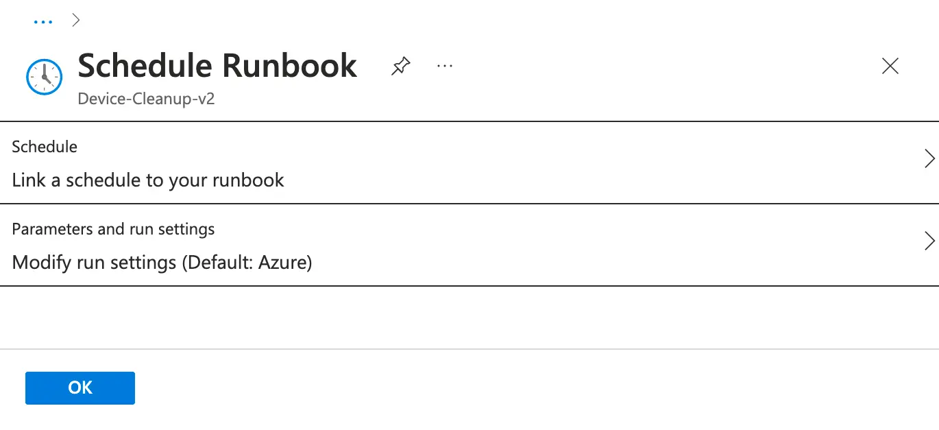 On the next screen, click Link a schedule to your runbook, then click OK.