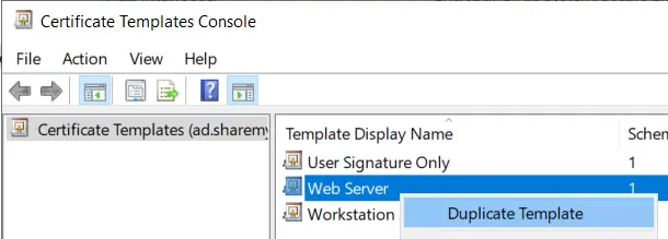 Next, let’s right click on Web Server and click Duplicate Template.