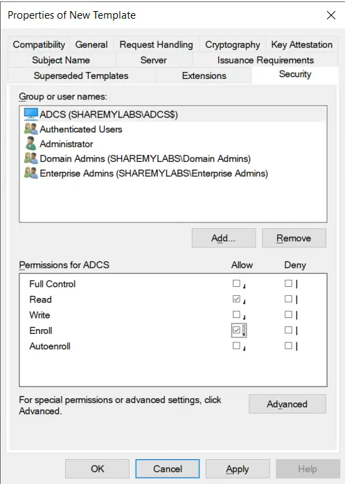 Select the computer you just added, then check Allow for the Enroll permission.